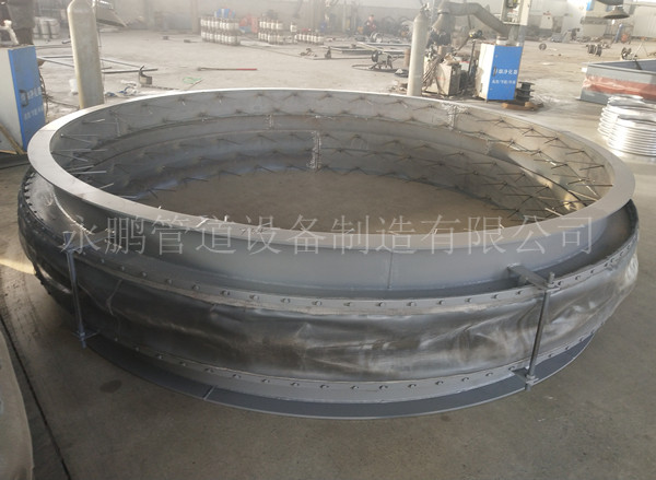 隔熱層需要密封性能良好,在設計壓力、溫度下及壓力試驗時無滲漏,對補償器整體框架無腐蝕,隔熱層材料應具有1的壓縮同復率,蒙皮材料理論上可以承受300r,但通常使用溫度在2001C以內(nèi),如果介質(zhì)為設計溫度1000'C的高溫爐煙,這需要采用特別處理的隔熱層來降低高溫爐煙的熱魔傳導到蒙皮的部分,隔熱層不應采用鋼絲網(wǎng)包裹的硅酸鋁纖維棉,而采用摸塊,通過增加隔熱層的厚度,使蒙皮表面溫度降低到2wr以內(nèi),確保矩形非金屬補償器的使用壽命。